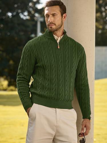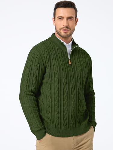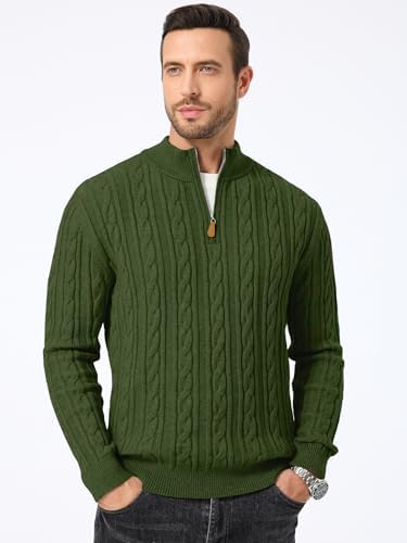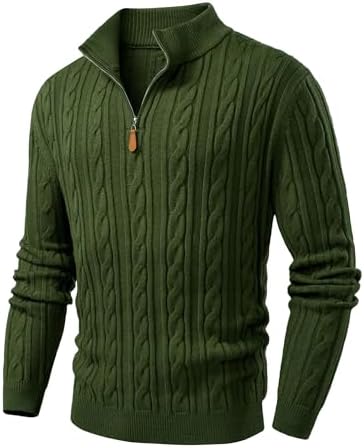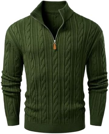 Sponsored Ad - Men's Quarter Zip Pullover Sweater Cable Knit Casual Stand Collar Texture Knitted Sweaters
