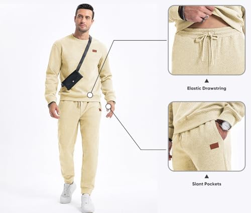 Sponsored Ad - Mens 2 Piece Outfits Knit Jacquard Pullover Sweatshirt Tracksuit & Joggers Sweatpants Sweatsuit Sets with Pockets