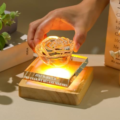 Sponsored Ad - Wedding Gifts for Couples-Mr&Mrs, Crystal Rose with Led Stand Decoration Memorial, Best Bride & Groom Engagement Souvenir Gifts Ideas (3.93 x 3.93 Inch