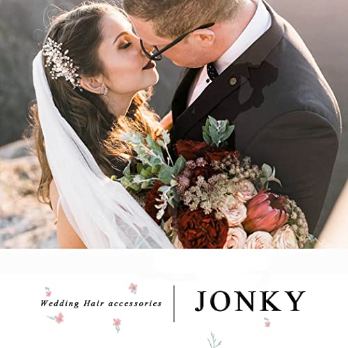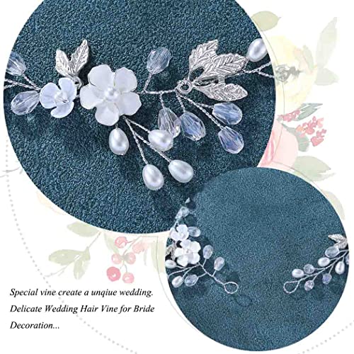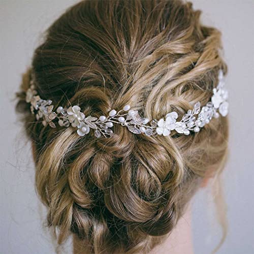 JONKY Bride Pearl Bride Hair Piece Leaf Wedding Headbands Flower Wedding Headpieces Crystal Bridal Hair Accessories for Women (Silver)