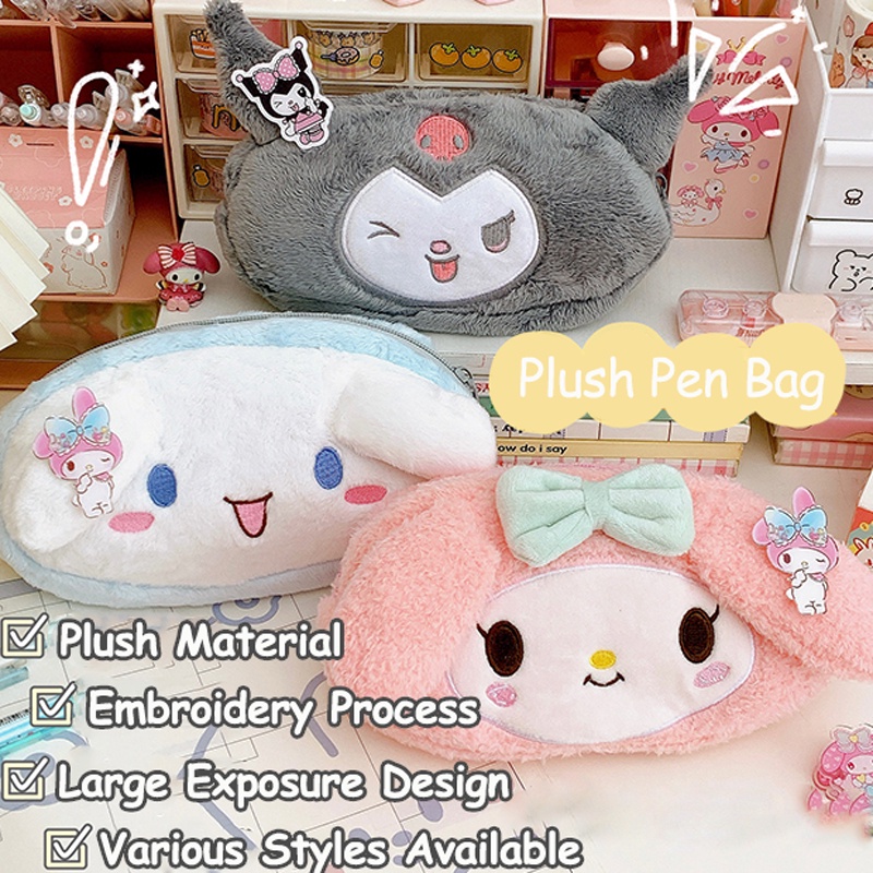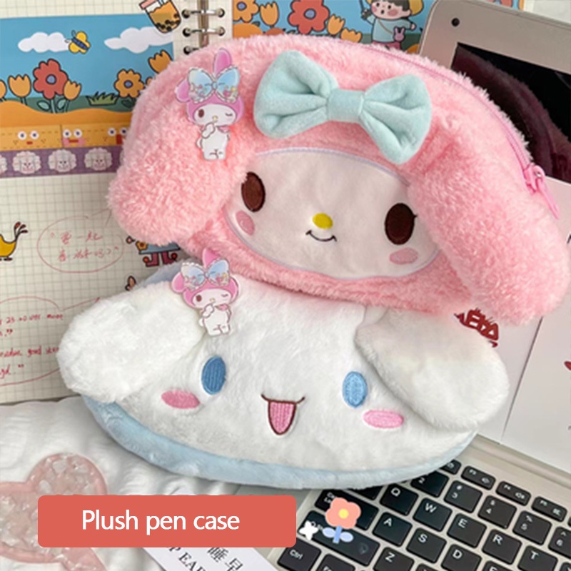 Kawaii Plush Pencil Bag Girls Cute Pencil Case Large Capacity Student Learning Back to School Supplies Storage Box Korean Stationerypencil case