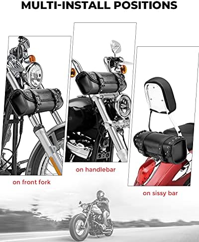 Motorcycle Tool Fork Bag PU Leather Universal Saddlebag for Front Fork Handlebar Sissybar Storage Pouch Motorcycle Roll Bag