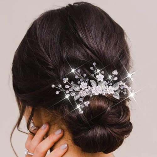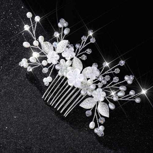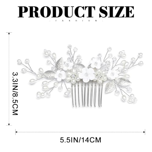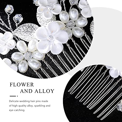Flower Bride Wedding Hair Comb Silver Pearl Bridal Headpiece Crystal Hair Accessories for Women