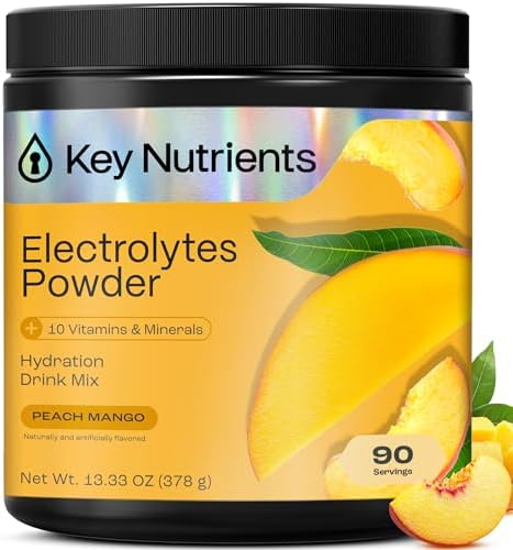 KEY NUTRIENTS Multivitamin Electrolytes Powder No Sugar - Tropical Peach Mango Electrolyte Powder - Endurance & Energy Supplement - Hydration Powder - No Calories - 90 Servings - Made in USA