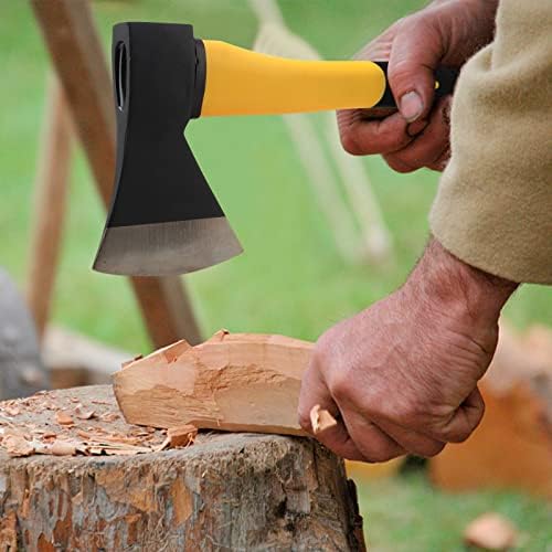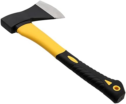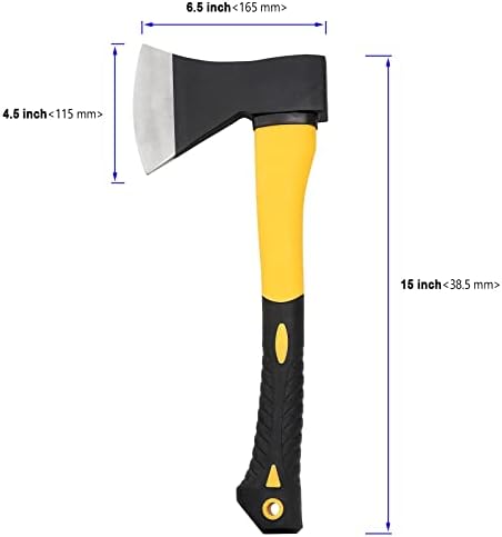 2 Pack 15 Inch Chopping Axe, Camping Axe with Rubber Cover, Forged Carbon Steel Heat Treated Blade and Fiberglass Shock Reduction Handle, Outdoor Camping Hatchet for Wood Splitting and Kindling