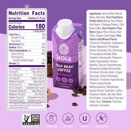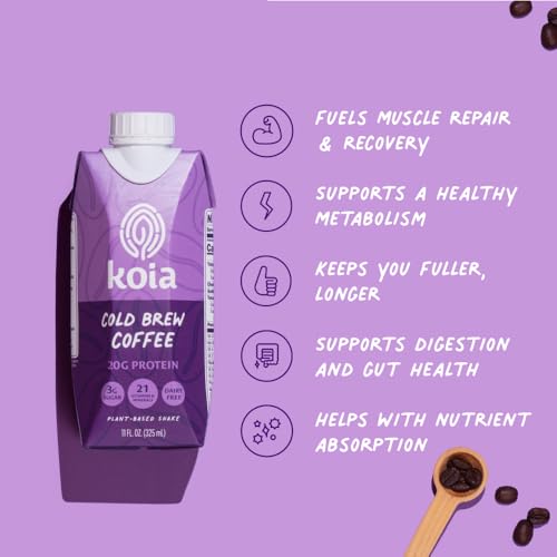 Sponsored Ad - Koia Plant Based Protein Shake, Cold Brew Coffee, 20g Protein, 3g Sugar, 6g Prebiotic Fiber, 21 Vitamins & Minerals, Meal Replacement Drinks, Dairy-Free, Gluten-Free, Non-GMO, 11 Fl Oz