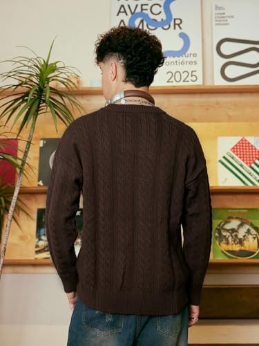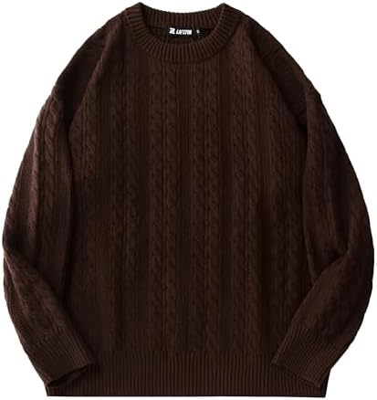 Sponsored Ad - Mens Oversized Sweater Unisex Crewneck Cable Knit Sweater Pullover Aesthetic Streetwear Casual Sweaters Jumper