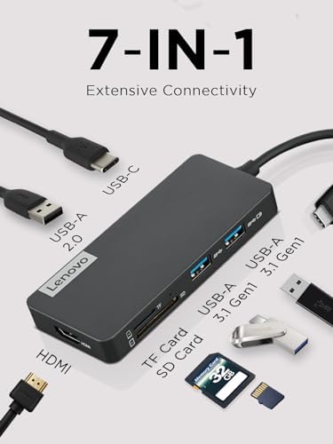 USB-C 7-in-1 Hub – Computer Networking Laptop Accessory – Laptop Docking Station - 4K via HDMI, 3 USB-A devices, 2 SD/TF Card Readers USB-C Power Pass Through