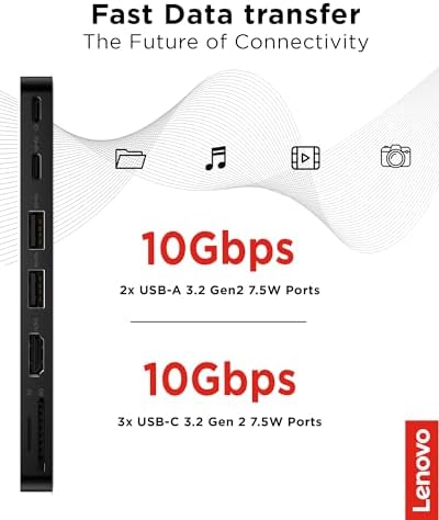 Lenovo USB-C Slim Travel Dock, 8 Ports, Up to 65W PD Pass Through, Integrated USB-C Cable, 4K Display Support, Black