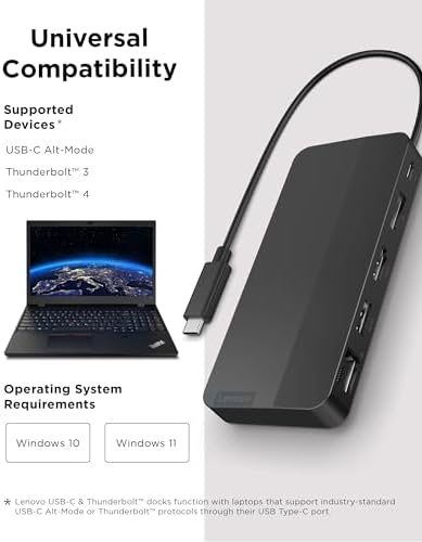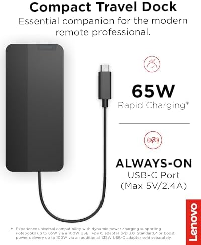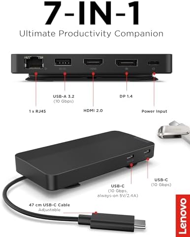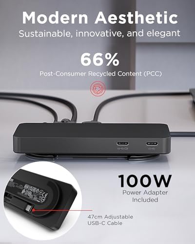 USB-C Dual Display Travel Dock w/ 100W Power Adapter - 7 Ports, Integrated USB-C Cable, Universal Compatibility, Dual Displays at 4K - Black