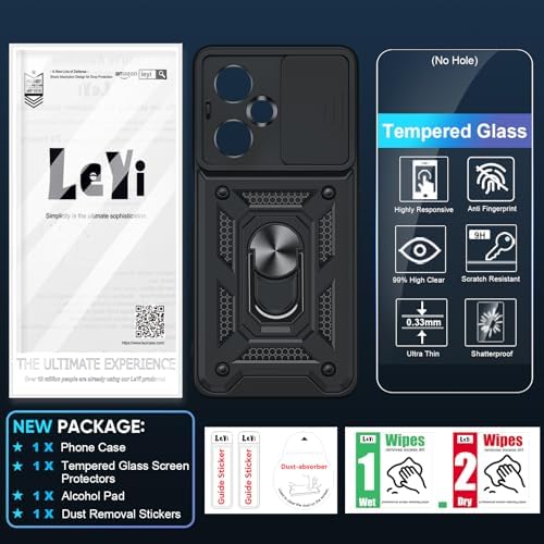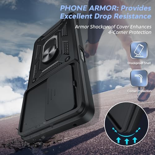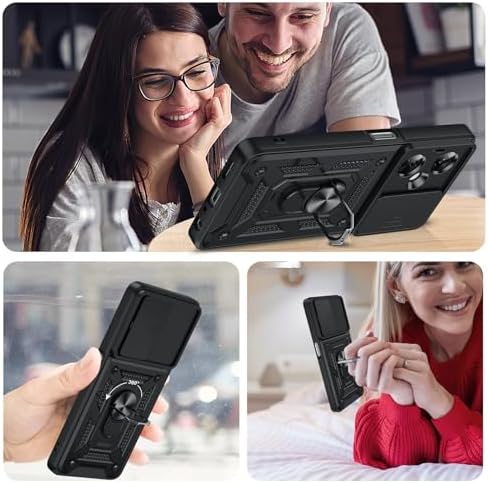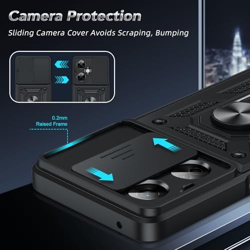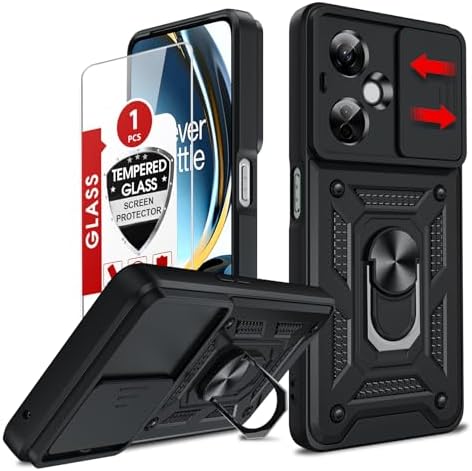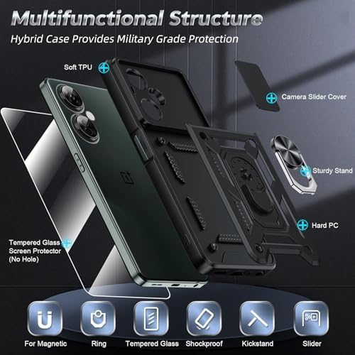 Compatible for OnePlus Nord-N30 5G Case: with Slide Camera Cover and Screen Protector, Heavy Duty Shockproof Protective Cell Phone Cover with Metal Magnetic Ring Kickstand for Nord N30, Black