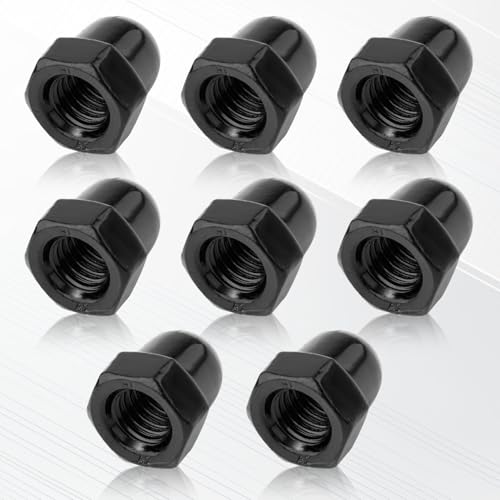 8pcs License Plate Retainer Nuts for Volvo V60/ V90/ S40/ S90/ S60/ XC90, Tall Dome License Plate Screw Caps Stainless Steel, Screws onto Existing Studs (Black)