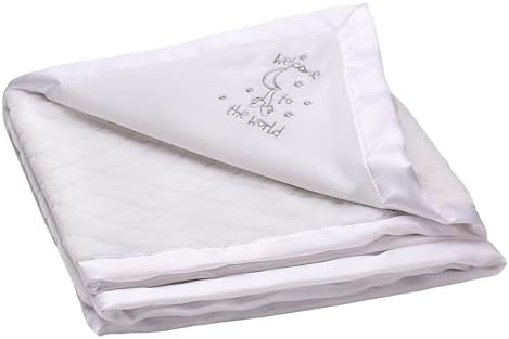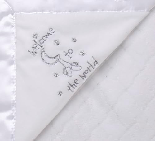 Little Me 2-Ply Baby Blanket with Welcome to The World Embroidery and Satin, (White, 30 in. x 40 in.)