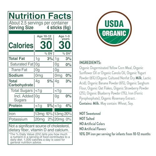 Little Bellies Organic Berry Yogurt Pick-Me Sticks, (Pack of 5 x 0.56 oz Individual Packs)