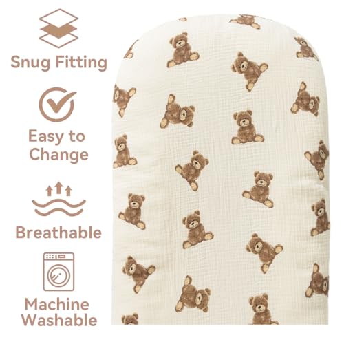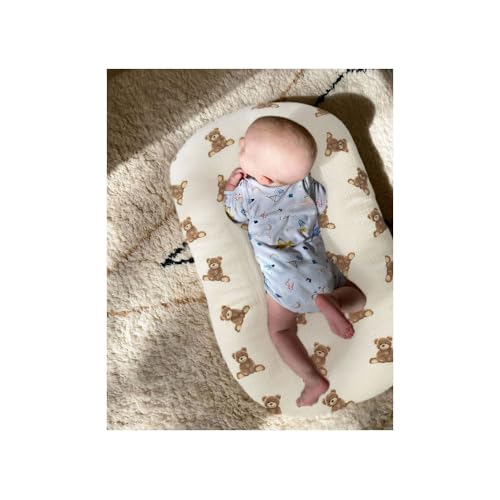 Little Jump Organic Cotton Muslin Baby Lounger Covers, 2 Pack, Soft Removable Slipcovers for Newborn Infant Lounger, for Girls Boys, Coffee Checkered (Teddey Bears & Kakhi)