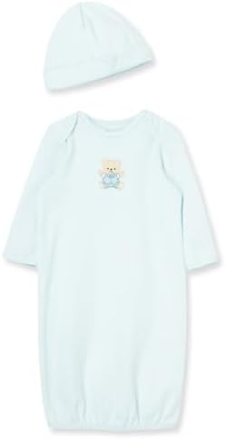 Little Me Clothes for Baby Boys' 2-Piece Nightgown and Cap Set 100% Cotton with Elastic Bottom, Baby Essentials, 0-3 Months