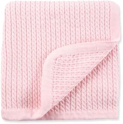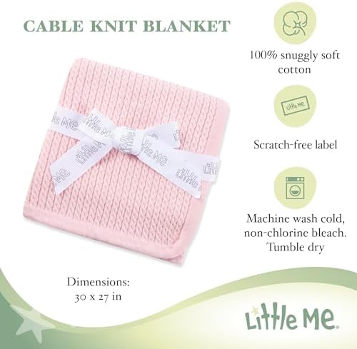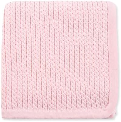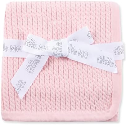 Little Me Baby Girls Pink Cable Knit Swaddling Receiving Blanket, 30 X 27 inches, 100% Cotton Baby Blankets