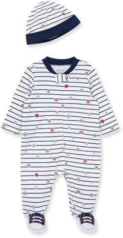 Sponsored Ad - Little Me Baby Boy Clothes 2-Piece Baby Sleeper and Cap Set, 100% Cotton Footies Baby Essentials, Preemie to 9 Months