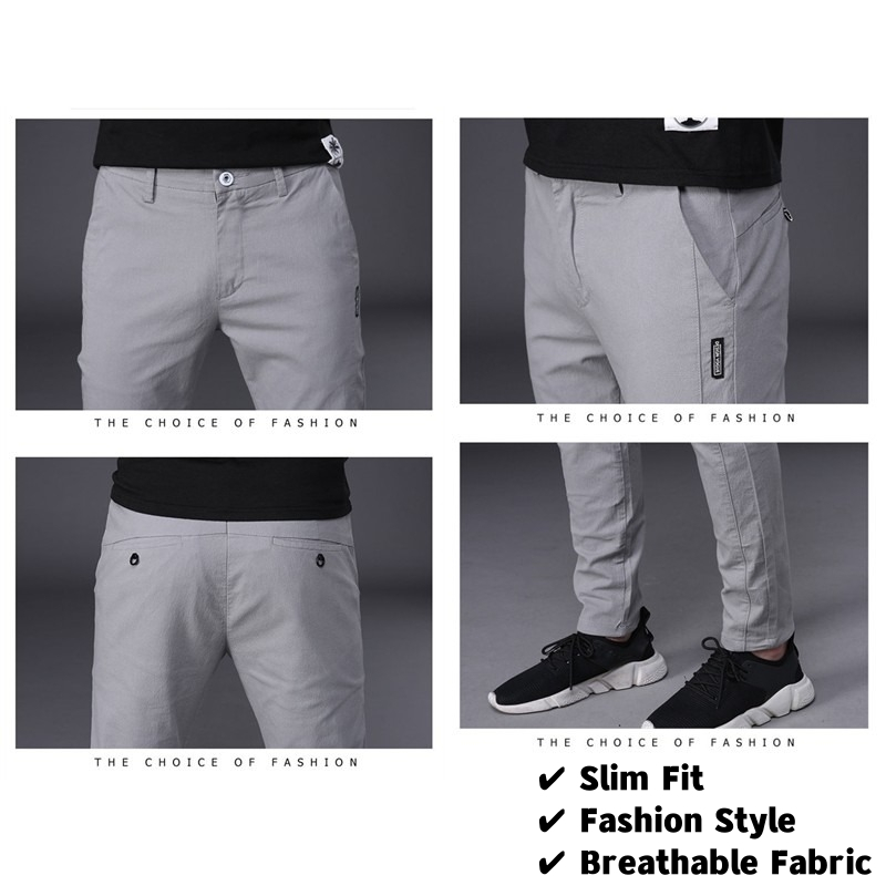 [Local Delivery] Korean Men's Slim Fit Pants Thin Ice Silk Breathable Casual Long Pant Fashion Trousers