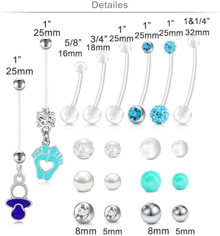 Longita Plastic Pregnancy Belly Button Rings Long Bar Navel Rings for Maternity Sport Pregnant Women Flexible Clear Belly Piercing Retainer Different Length bar and Balls for Replacement 10-32mm