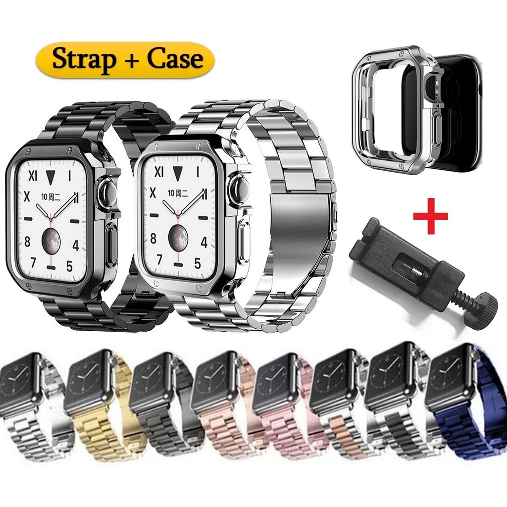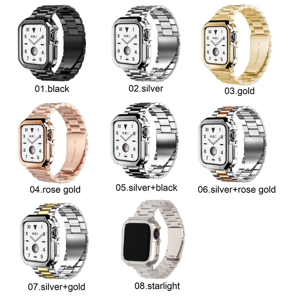 Material Quality:Good, sturdy metal for strap and rubber for casing Colour:Accurate I was surprised that both 42mm and 44mm casing were the same. Strap could also fit both dimensions. The casing is rubbery so it can be stretched. It looks like metal and matches the strap well. Slightly heavy, and it’s not the filmsy, light metal material