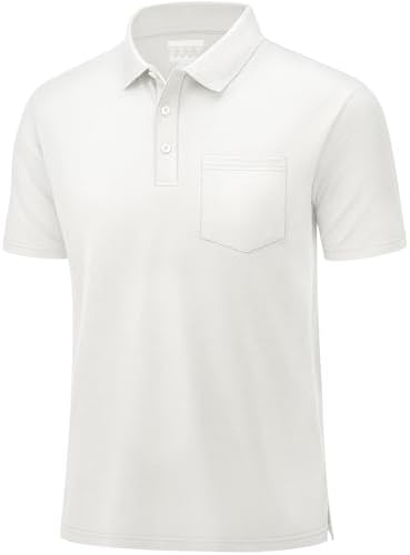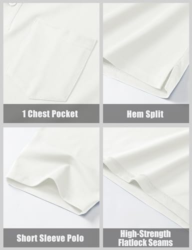 Mens Polo Shirts Short Sleeve Cotton Pique Golf Shirts with Pocket Casual Performance Moisture Wicking Polos White XL