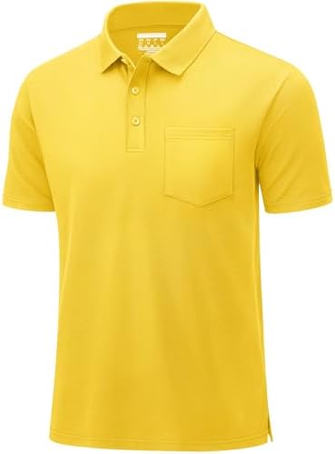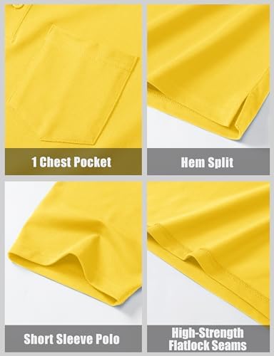 Mens Polo Shirts Short Sleeve Cotton Pique Golf Shirts with Pocket Casual Performance Moisture Wicking Polos Yellow XL