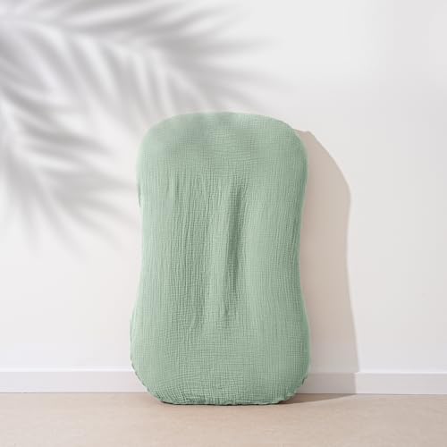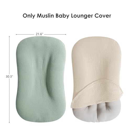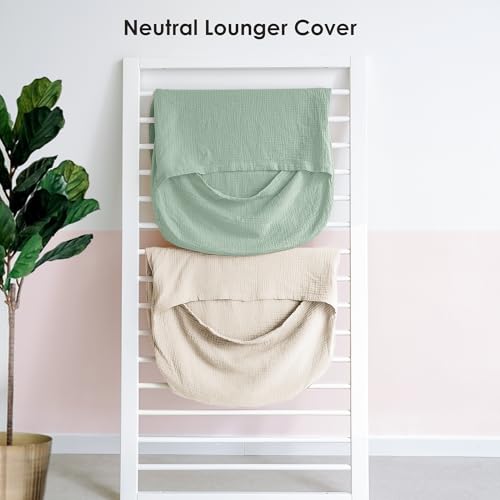 Muslin Baby Cover for Newborn, Soft and Breathable 100% Cotton Lounger Slipcover Neutral, Pack of 2(Green, Ivory)