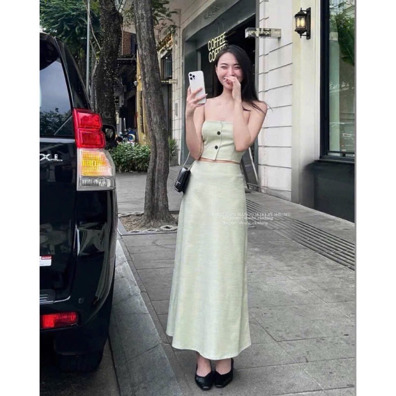 True to description:yess Material: Linen Color: beige, beige The dress is also the best =)) I didn't buy green because I was afraid that I wouldn't be able to mix clothes on weekdays =)) The skirt that went to the wind blows 10/10 thank you shop
