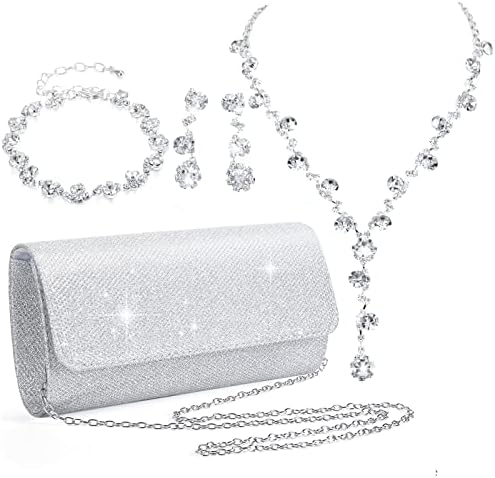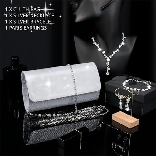 Sponsored Ad - Meanplan 4 Pcs Silver Clutch Purse Jewelry Set for Women Evening Rhinestone Purse Silver Accessories for Women Bride Wedding Jewelry
