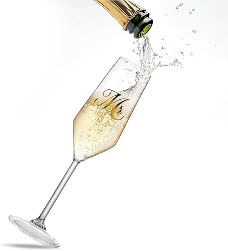 Mfacoy Mr. & Mrs. Champagne Flute Set, Wedding Decor - His and Hers, Wedding Toasting Glasses for Engagement Celebrations, Bridal Shower and Registry Idea, Tall Wine Glasses for Bride and Groom Gifts