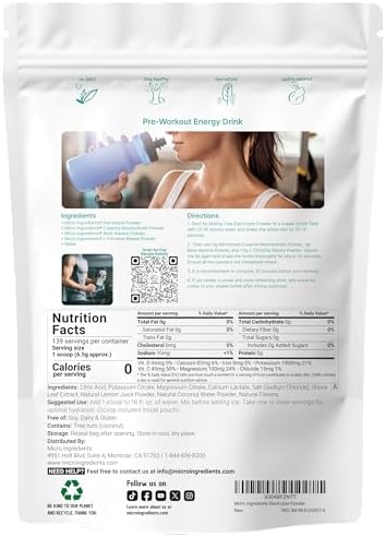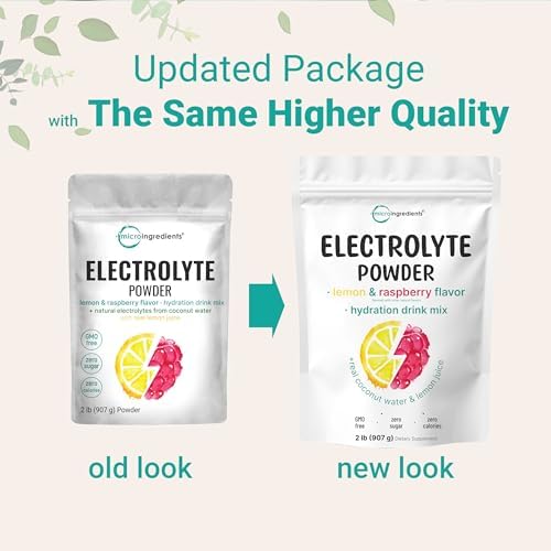 Micro Ingredients Hydration Electrolyte Powder, 2 lb (139 Servings) | Lemon Raspberry Flavor | High Potassium (1,000mg) + Coconut Water & Real Lemon Juice | No Sugar, Keto Friendly | Non-GMO