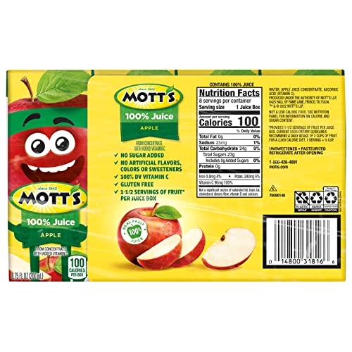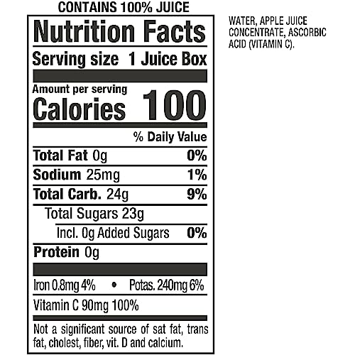 100% Original Apple Juice, 6.75 Fl Oz Boxes, 32 Count (4 Packs Of 8), 2 Servings Of Fruit, 100% Fruit Juice, Gluten-free, Caffeine-free, Kosher, Contains No Artificial Colors Or Sweeteners