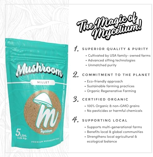 Sponsored Ad - Mycelium Premium Mushroom Spawn, Millet Grain I Organic Grain Feed Mushroom Growing Kit I Indoor Cultivation for Starter & Pro Home Growers I Non-GMO & Sourced from Local USA Farms, 5lb