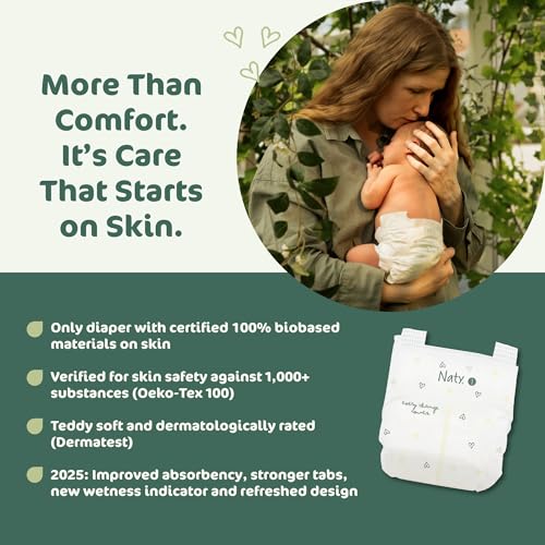 Sponsored Ad - Naty BioEmbrace Baby Newborn Diapers Size 1 (4–11 lbs) | 100% Biobased on Skin | Plant-Based Softness | Dermatologically Tested, Super Absorbent | 25 Count
