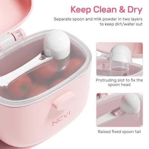 Baby Formula Dispenser On The Go, Formula Container To Go, Formula Holder for Travel, Outdoor Picnic with Baby Infant, Portable Container for Milk Powder, Snacks, Candy, Fruits (Pink)