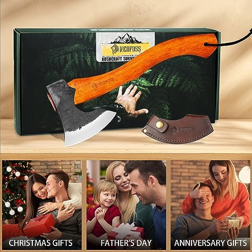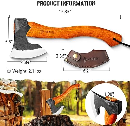 NEDFOSS Mammoth Camping Hatchet Axe, 15.5" Camping Axe with 1065 High Carbon Steel & Wooden Handle, Multi-Purpose Hatchet Axe for Camping, Bushcraft and Survival, Gift for Men