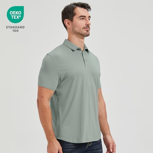 Sponsored Ad - Mens Lightweight Bamboo Viscose Polo Ultra Soft Curved Hem UPF 50+ Casual Collared Golf Shirt