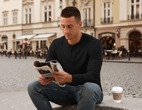 Sponsored Ad - Men's Henley Shirts Long Sleeve Button T-Shirt Fashion Casual Pullover Shirt