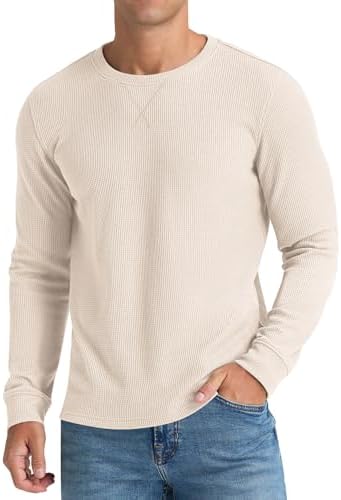 Sponsored Ad - Mens Waffle Crewneck Shirts Slim Fit Long Sleeve Casual T-Shirt