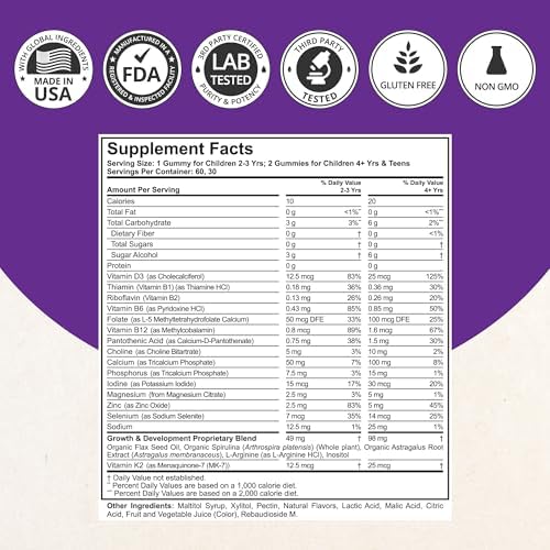 Sponsored Ad - Tall Gummies for Kids Age 2+ & Teens | Bone Strength, Immunity, Digestive Health with Calcium, Vitamin D3, K2, B Complex, Magnesium, Zinc | 20+ Vitamins Berries Gummies, No Added Sugar