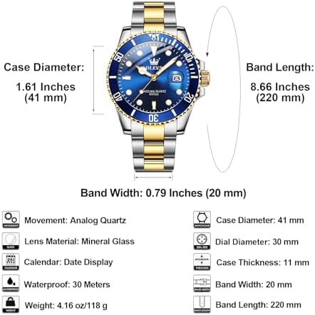 Men's Stainless Steel Watch, Big Face Easy to Read Analog Quartz Dress Watches, Classic Rotating Bezel Waterproof Luminous Hands Date Mens Wristwatch