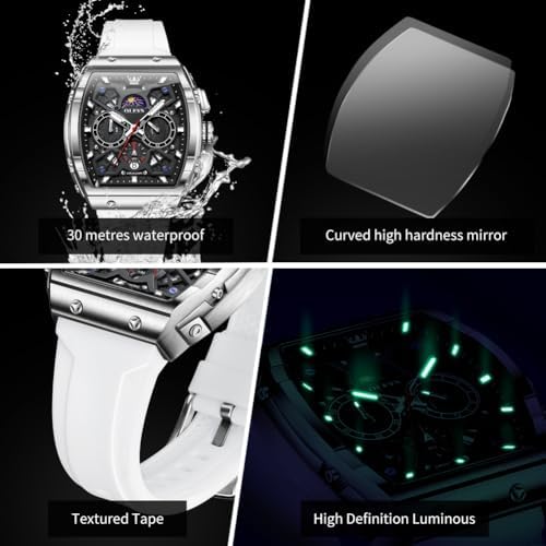 Sponsored Ad - Watches for Men Casual Luxury Large Face Multifunctional Chronograph Men's Watches Durable Silicone/Nylon Strap 3ATM Waterproof Men Watch Date Moon Phase Analog Quartz Watch Reloj para