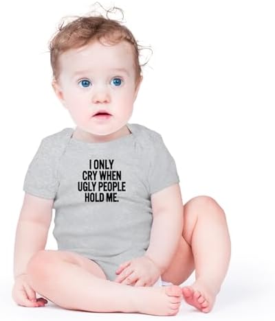 AW Fashions I Only Cry When Ugly People Hold Me Baby Bodysuit Funny Cute Baby Girl or Boy Outfit Romper