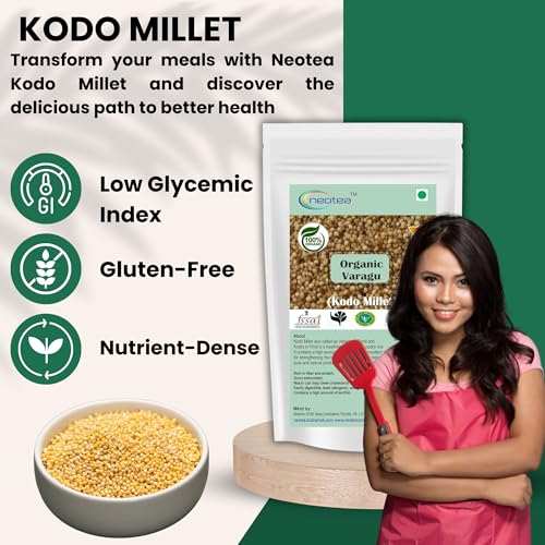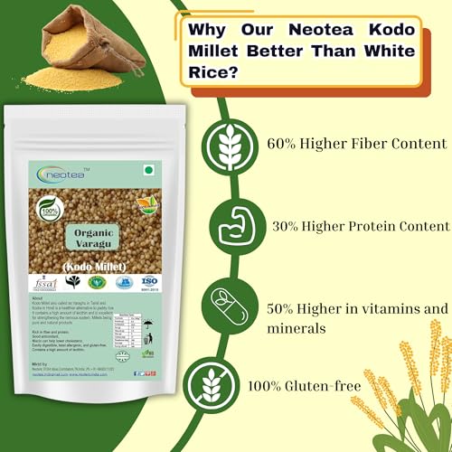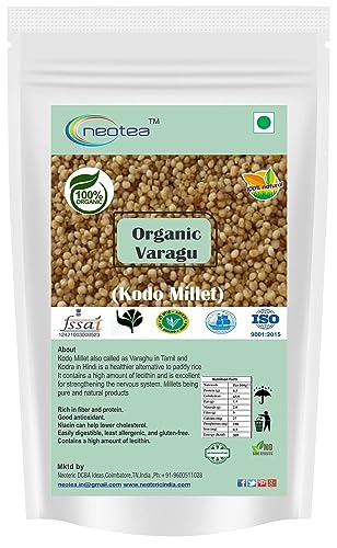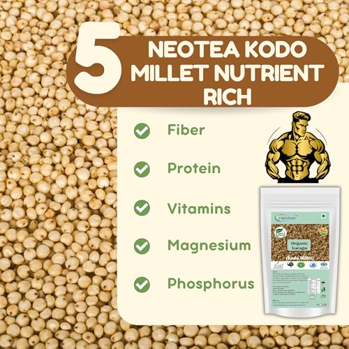 Neotea Organic Kodo Millet | Varagu | Kodra | Arikelu | Harka | Kodon -500g/ 1.1 lb Unpolished & Gluten Free | Healthy Cereal | Non-GMO | Natural Grains | Rich in Fiber and Protein
