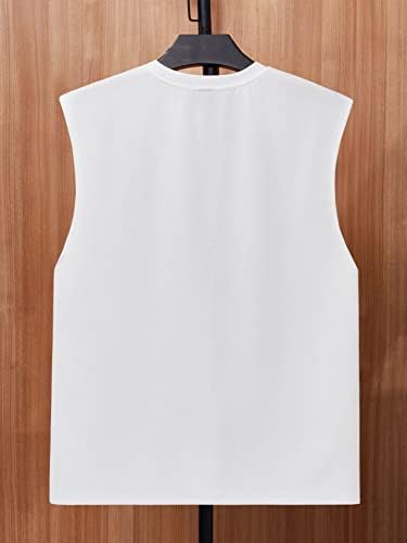 Men's Letter Patched Textured Sleeveless Crew Neck Tank Tops Workout Athletic Casual Shirts