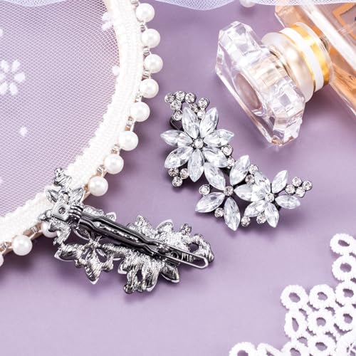 PAGOW Hair Clips, 2Pcs Crystal Flower Bridal Hair Accessories, Silver Rhinestone Hair Pins, Wedding Headpiece for Brides Women Girls