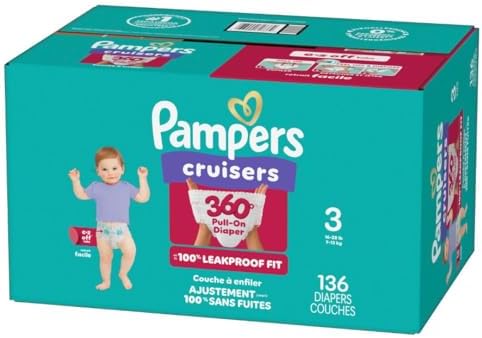 Diapers - Cruisers 360 - Size 3, 136 Count, Babyproof up to 100% Leakproof Pull-On Diaper