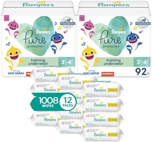 Pure Pants 4T5T (2 x 80 Count) with Sensitive Water Based Baby Wipes, 12X Pop-Top and Refill Packs (1008 Count)