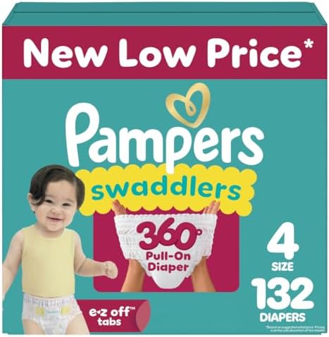 Sponsored Ad - Diapers - Swaddlers 360° - Size 4, 132 Count, up to 100% Leakproof Comfy Dry Fit, Designed for Easy Changes, Pull On Baby Diaper (Packaging May Vary)